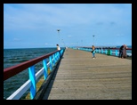 Al final de la calle comienza una zona en la que el pavimento de hace de madera y empieza a adentrarse en la arena, comenzando así un largo muelle que aparece ante nuestros ojos al subir un pequeño montículo de duelas de madera. Este muelle se adentra en el mar unos 500 metros, dicen que es el mayor que existe, y desde el que parece que uno está dentro del mar, pues se aprecia bastante la distancia a la costa cuando se ha recorrido la mayor parte del muelle. Popularmente es llamado Puente del Mar.