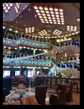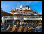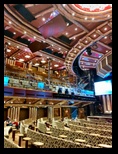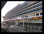 A la llegada buscamos un restaurante antes de dirigirnos al embarque, y después nos dirigimos al puerto donde ya estaba en espera el enorme buque de casi 300 metros, con 17 cubiertas y capacidad para 3.800 pasajeros y 1.110 tripulantes. Una gran ciudad flotante con comedores inmensos, bares, discoteca, capilla, gimnasio, teatro para 1.300 personas, parque de atracciones, piscinas, jacuzzis, etc. Repartidos por las 13 plantas visitables y que están comunicadas mediante tres grandes núcleos verticales con escaleras, ascensores, ascensores panorámicos, etc. Todo al límite de la perfección, la riqueza en las decoraciones y en los materiales, con llamativos mármoles y delicados detalles en cada rincón.