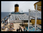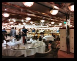 En la cena se nota que bastantes pasajeros se habían bajado en Marsella y Savona, se nota la tranquilidad, se nota de la ausencia de un grupo de 11 alemanes, todos hombres, que hacían el crucero solos, que todos los días cenaban con canticos y celebrando todos los días el mismo cumpleaños, sirviendo de excusa para dar buen uso de botellas de vino y cervezas que les alegraba a lo largo de todo el día.
