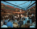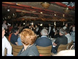 El buque parte a las 18 horas y pronto alcanza una velocidad importante y se pierde en la inmensidad del mar. Se realiza el ejercicio obligatorio de emergencia general y, una vez terminado, descansamos algo en los camarotes esperando la hora asignada para la cena, que en nuestro caso era las 9,15 en un gran comedor de dos plantas, lujosamente decorado y con decenas de mesas preparadas para recibir a los comensales que con antelación, ya teníamos asignadas, teniendo la suerte de compartirla con un matrimonio excepcional cuya compañía ha sido un gozo de compartir y cuya amistad quiero conservar en nuestro corazón.