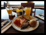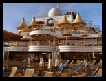 El camino se continúa al mediodía, mientras en los distintos bufet todos nos afanábamos por disfrutar del almuerzo con las excelentes vistas desde la cubierta novena, directamente al mar azul, al cielo brillante, a los veleros, las gaviotas, la tranquilidad.