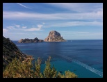 Ibiza, la isla mas meridional de las Baleares, goza de fama por disponer de macro discotecas, multitud de chalet de blancas paredes y de puertos repletos de yates descansando durante el dia para disfrutar de la noche. El centro de la ciudad está enclavado en un montículo amurallado que, por encontrarse en fiestas, no nos fue posible visitar con el bus, por lo que nos enseñaron parte de la isla, alguna playa y, con mucha dificultad, alguna iglesia de pueblo con escaso interés y mucho calor en el mediodía. Los precios prohibitivos incluso en chiringuitos de carretera o de playa. Un esfuerzo poco recompensado, pero que ha ofrecido la posibilidad de tener unas nociones sobre esta ciudad que, seguro, por la noche tendrá algún atractivo.