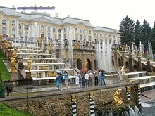 destacando el inmenso conjunto de jardines y palacios de Petrodvorets, llamados