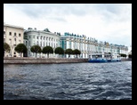Asomándose al gran río, nos encontramos con el famoso museo Hermitage, anterior residencia de los zares, y que en la actualidad esta constituido por seis palacios unidos, varios de los cuales fueron realizados expresamente para albergar cierta colección de obras de arte, y que se fueron uniendo a las existentes.