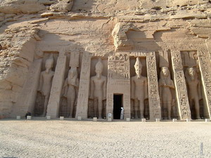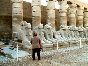 En realidad, todo el conjunto está constituido por tres recintos – templos que se encontraban unidos por avenidas de hasta cuatro kilómetros, flanqueadas de esfinges, bien con cabeza de carneros o humanas, conservándose algunos tramos.