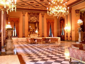 candelabros y lámparas, así como suelos de brillantes mármoles haciendo